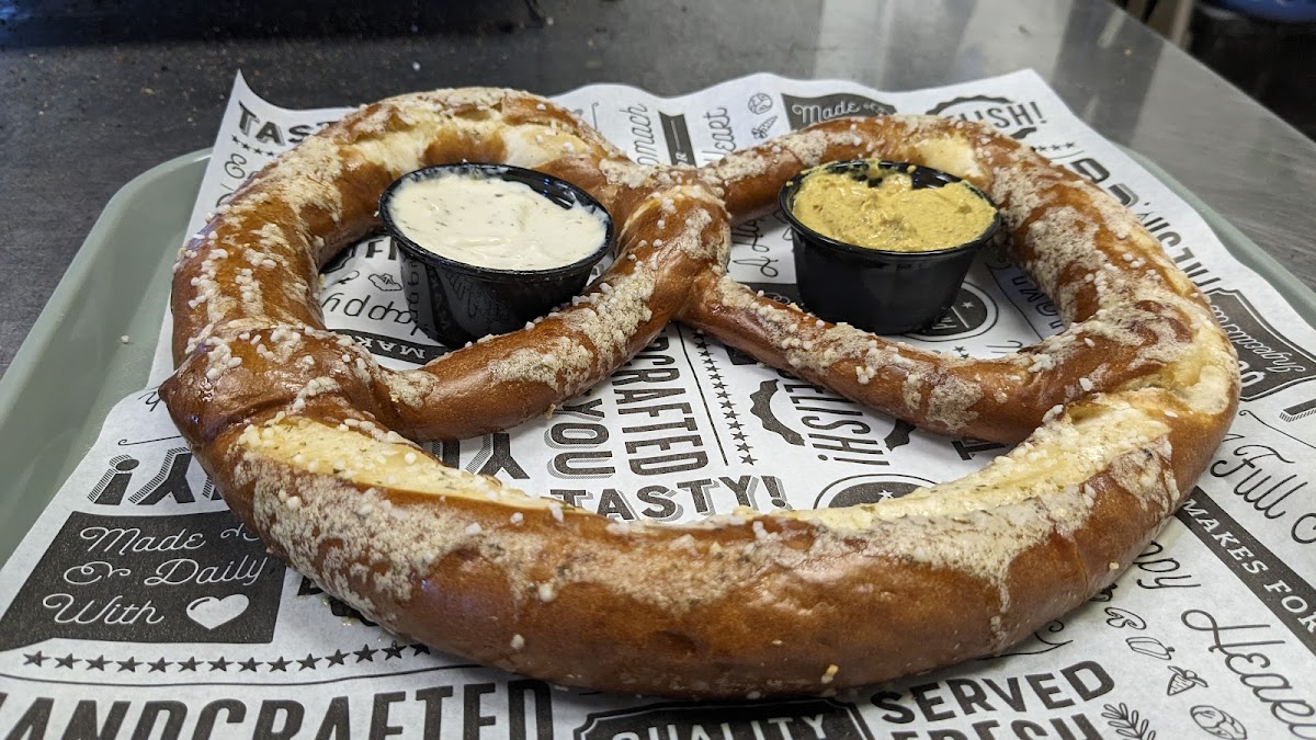 What an exceptional brewery, lots of beer choices but also offering seltzer, ciders and a few main liquor choices. Huge space with large screens and many game options. We got the pretzel and meatball sub which were great but multiple pizzas came out while we were there that looked and smelled fantastic. Highly recommend checking this place out